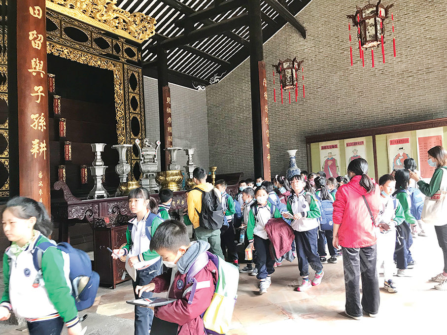Primary school pupils visit a temple in Shawan Ancient Town in Guangzhou’s Panytu district last week.