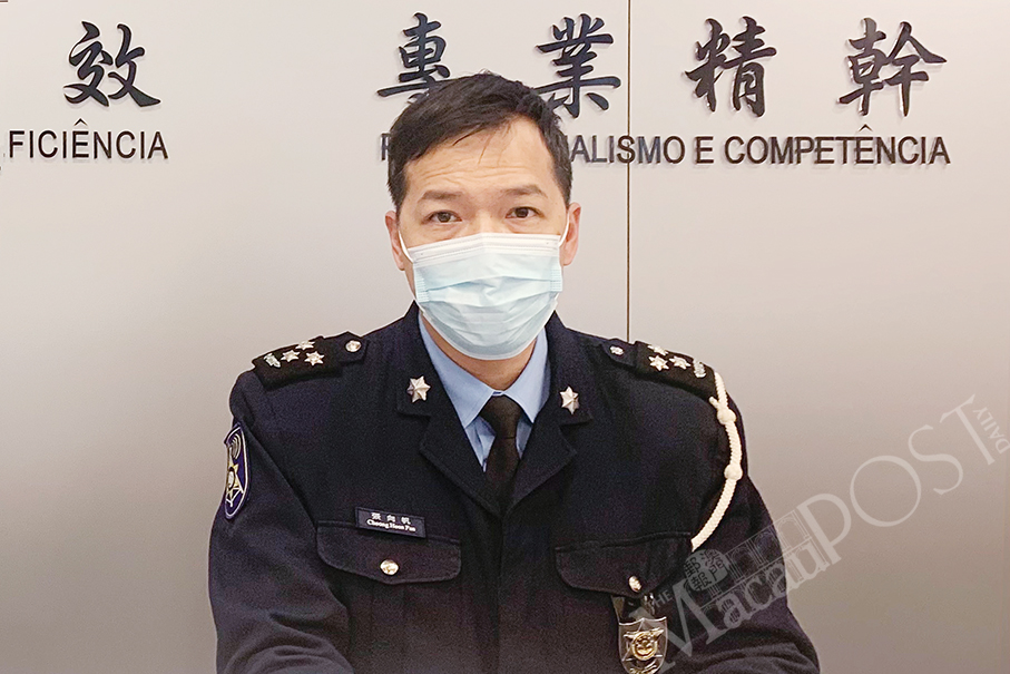Public Security Police (PSP) spokesman Cheong Heon Fan poses during Wednesday’s regular press conference.
