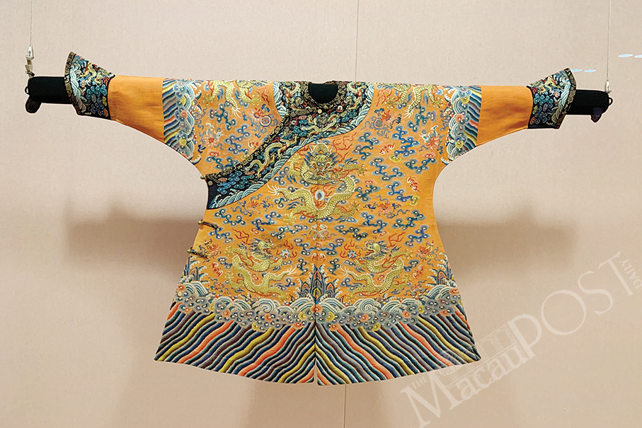 An exhibition entitled “Stately Demeanour: Costumes of Qing Emperors and Empresses from the Collection of the Palace Museum” at the Macau Museum of Art (MAM) is showcasing nearly 90 pieces and sets of costumes, jewellery and accessories from the collection of the Palace Museum in Beijing.